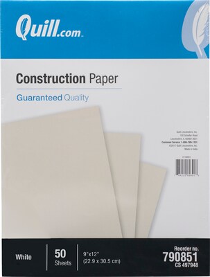 Quill Brand 9 X 12 Construction Paper White 50 Sheets Pack 790851 Quill Com